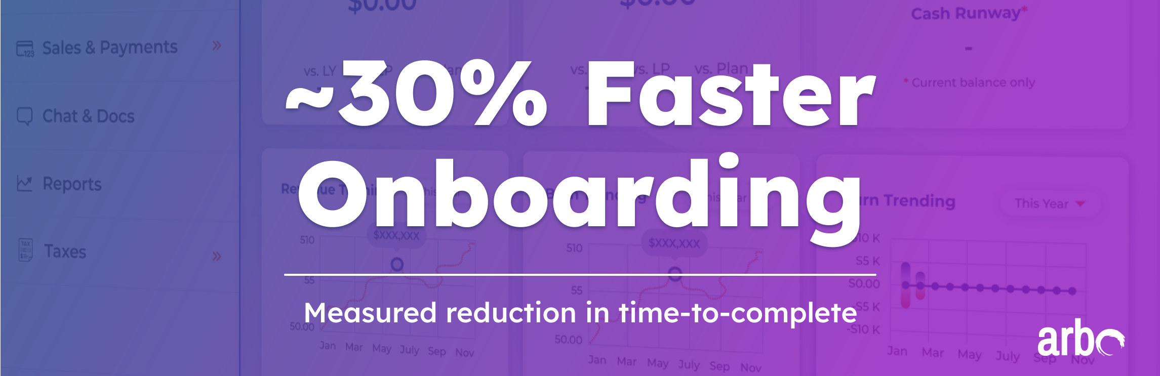 Arbo was an accounting SAAS focused on growing start-ups. Their CEO recognized that their personally-facilitated onboarding process was causing a major scalability issue leading to the loss of prospects and potential revenue. To address this I implemented a self-serving onboarding experience that resulted in ~30% faster onboarding time-to-completion, allowing Arbo to continue to scale efficiently.