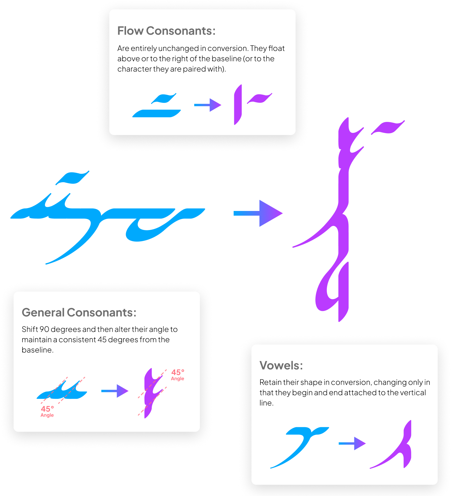 Based on my initial research I decided on 5 key constraints that would guide the development of the writing system: