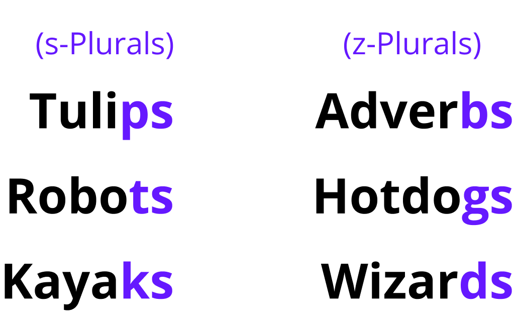 Plurals are a category unique to Chasa. They're formed when specific Hits are combined with an 's' character (which may actually be a 'z' sound depending on the word). These sounds are made nearly at the same time in the mouth and so are represented by a single character.